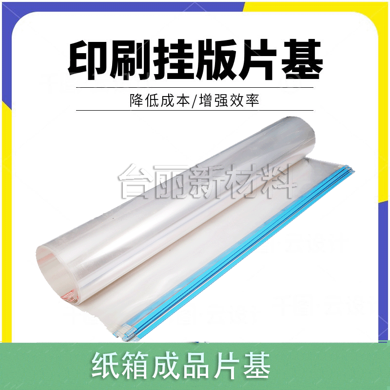目前,公司专业生产PET胶片、APET胶片、PVC胶片、PP胶片、PS胶片、TPU膜、PE静电膜/保护膜等材料,纸箱耗材产品涵盖连条片基、挂版条、挂版槽、挂版片基、纤维胶带、送纸轮、太阳轮、印刷衬垫等,同时还代加工高精度分条、覆膜、裁片材料等工序。