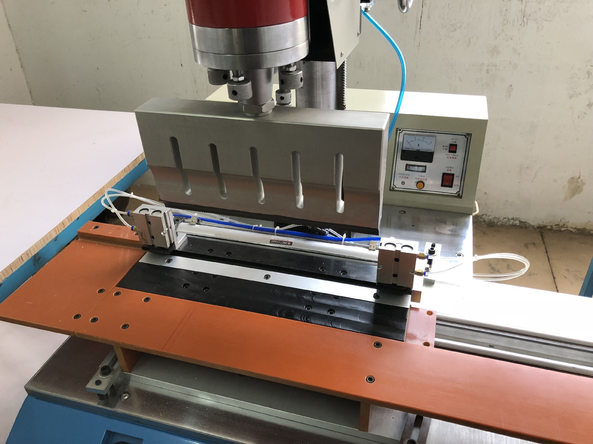 9.机器采用PLC控制。采用气缸送料,保证送料精度;采用分段压合,总长度根据产品需要,设置压合次数,每次压合长度400mm